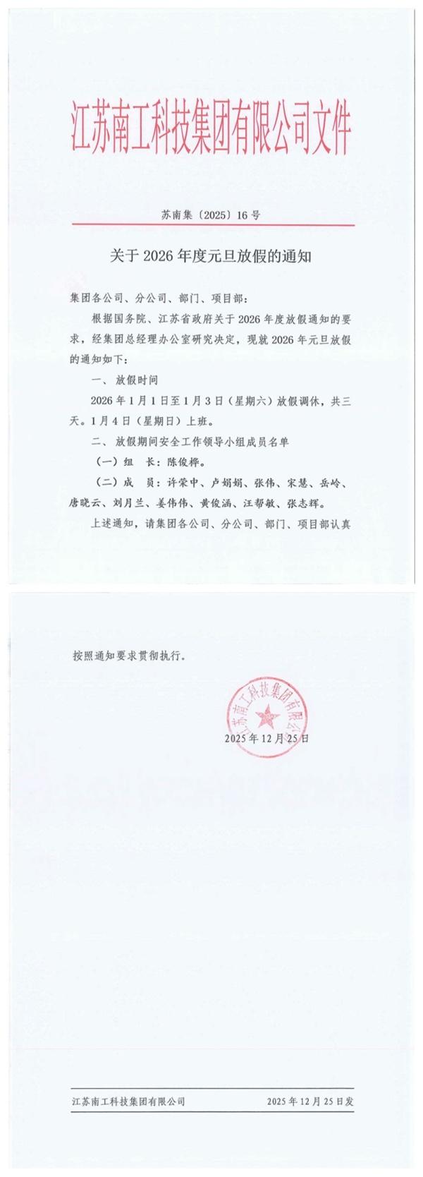 您的位置:集团首页 >> 新闻中心 >> 集团公告 >> 关于2026年度元旦放假的通知